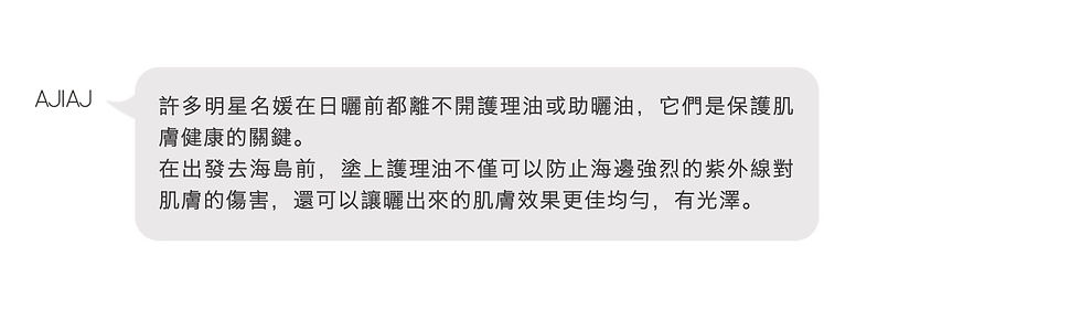 一開始Rachel的誤區就是不塗防曬,讓肌膚直接接觸陽光,結果去夏威夷的時候慘烈地曬傷了,當時身上出現了小片的血管破裂,從那之後,Rachel去海島都會用上SPF50的防水防曬霜。